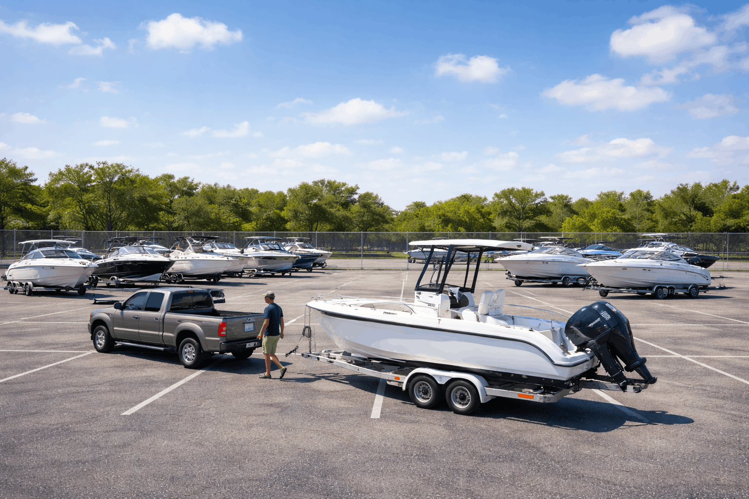 Protected storage for boats and watercraft of all sizes with space for trailers included. Secure, fenced lots with 24/7 access